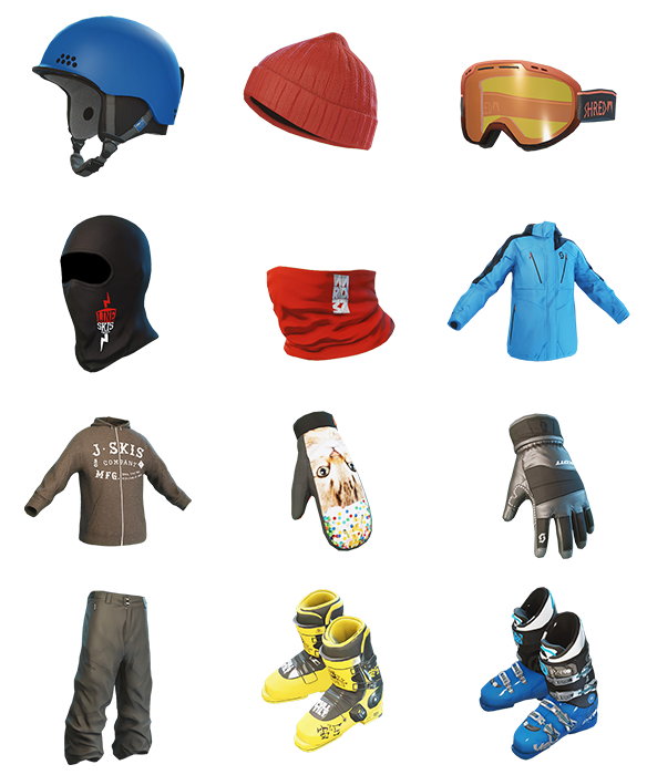 The Skier Pack also comes with all the clothing and equipment you need to ski in style, including 6 Equipment Items, and 10 Clothing Items from the biggest ski brands for you to customize your character with. Also included in the Skier Pack are the Snowmobile and Prop Tool feature unlocks, so you can explore faster and customize your mountain immediately.