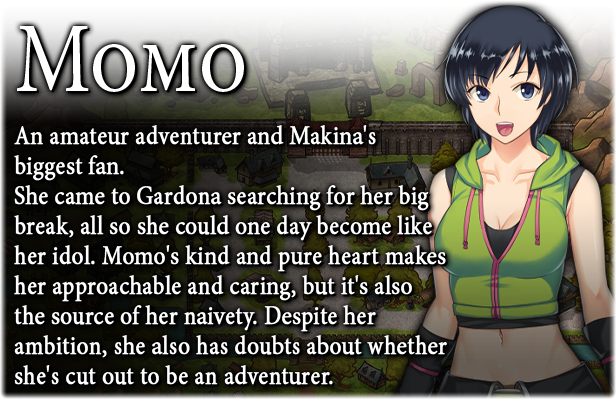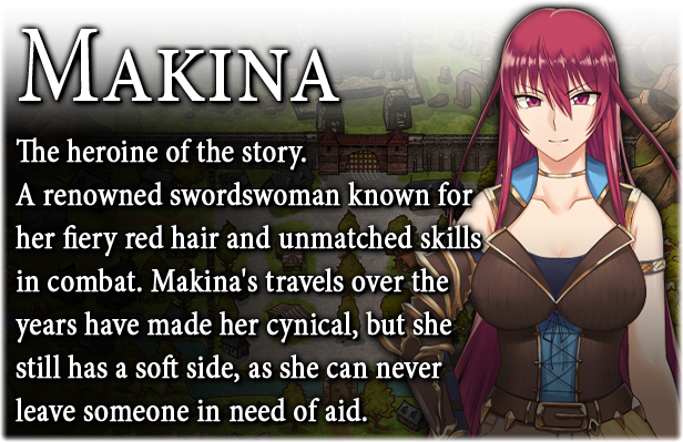 Makina is a renowned swordswoman known throughout the kingdom. During her travels, she hears rumors about the ancient ruins in the city of Gardona, its mysterious treasure, and the dangers contained within. The news has brought many adventurers to the city... And Makina is one of them.