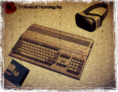 old truck which have -as every car in this scrap yard- seemed to be in a traffic accident. Logo of the truck is badly damaged, but he can read some text in it, about "Co" and "International". He peek into the truck, and notice that most of the stuff is badly damaged. But deeper inside truck trunk he finds a prototype of VR-glasses and a floppy disk. Mark smuggle the glasses and a floppy disk to his home and to his surprise, he find out that the glasses are compatible with his Amiga 500. Quickly he realizes that the truck and all techie stuff were a property of C-I Advanced Technology Department, which does cooperation with a military.