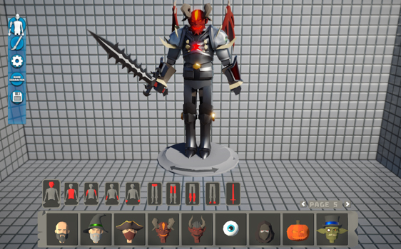 Craft your own enemies out of a wide selection of body parts, ranging from a pumpkin head to a giant eyeball body! Mix and match left and right limbs. Get creative with the paint pallet, assign glows and metals, fill worlds with enemies straight from your imagination. Body parts can also be hidden to create spooky floating enemies, assign its behavior, health, damage and more. Scale options give you the power to change the size of the head and overall height. Make a whole army of scary undead that fights on the side of the player if you want to!