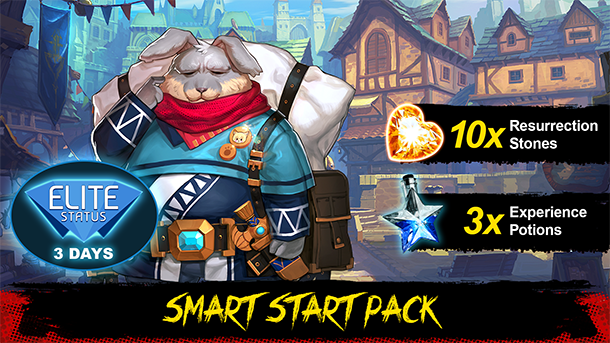 Smart Start Pack—Contains 10 Resurrection Stones, a 3-Day Elite Voucher, and 3 Experience Potions.