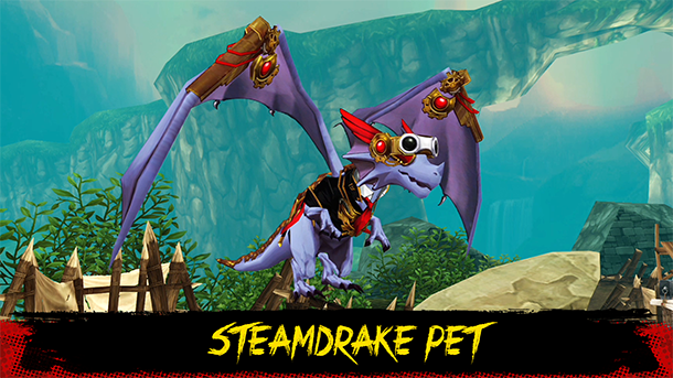Steamdrake—Your personal, powerful, fire-breathing dragon pet. Provides you with a pet that can auto-loot for you, as well as summon a larger, more powerful version of itself.