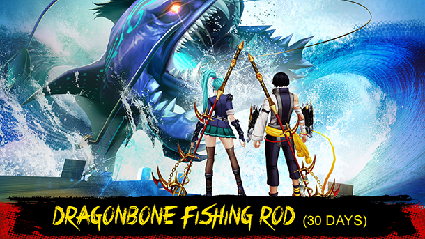 Dragonbone Fishing Rod (30 Days)—Boost your fishing power! Fish with triple the bait capacity of a normal fishing rod, for extended fishing trips.