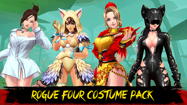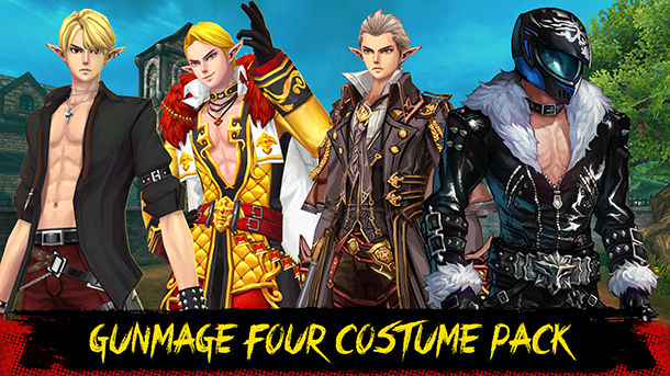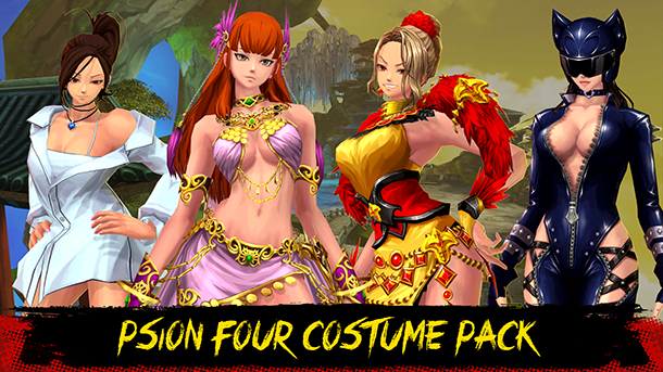 Four Costumes— Sexy, zany, dapper, or... cute? A bundle of four different, complete costumes, tailored for the class of the character who receives them. Includes the exclusive Gold Raider costume!