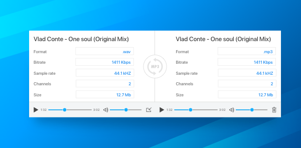 Convert any audio files to MP3 format in one click! The application supports a large number of audio formats and guarantees high-quality sound.