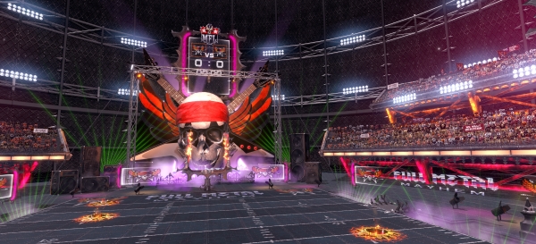 Full Metal Mayhem Team & Arena – The MFL’s first undead rock & roll team. Quarterback Ziggy Starburster and Shreddy Von Hatin tear up the league with a high voltage offense. Includes “Stairway to Heaven” home arena.