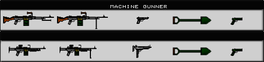 Unlocked alternative uses a lower damage machine gun with longer view-distance, also replaces pistol with a sub-machine-gun.