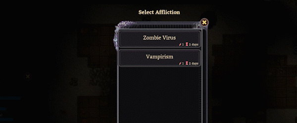 Afflict a Villager with Vampirism or Lycanthropy to turn them into denizens of the night. Watch as they terrorize their neighbors and spread the curse! You may eventually see the Village fight back and start Vampire and Lycan Hunts.