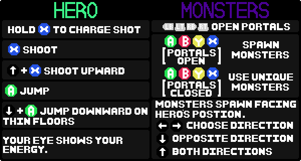 The HERO player can jump around and shoot the monsters trying to figure out an opening in the MONSTERS plan.