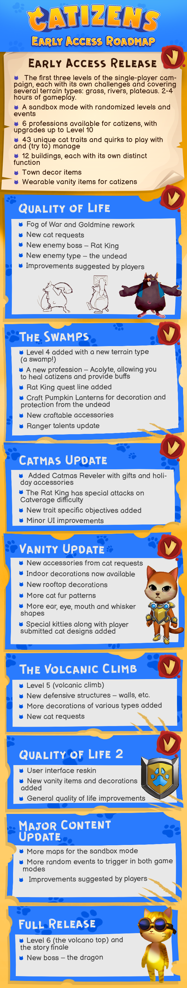 Inspired by RimWorld and The Sims, Catizens is a colony management simulation game where you watch over unique cats with quirky personalities, as you help them build and grow their settlement while exploring new lands, facing off against wildlife and overcoming the challenges of each environment.