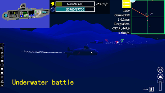 The blocks in the game have their own physical characteristics. There are no blood bar in the game, including the buoyancy of the submarine, all using real-time physical simulation.