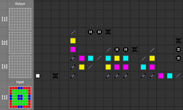 OCTOPTICOM is an open-ended puzzle programming game about designing and optimizing optical computing devices. Use lasers, mirrors, filters and other components to read, transform and write sequences of colored squares.
