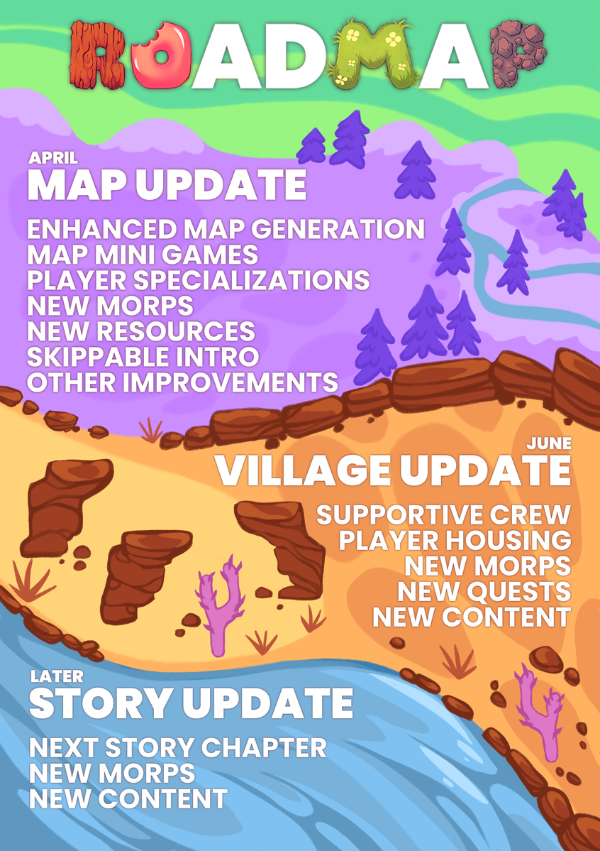 Time to Morp is a colony sim game in which you take care of playful creatures - Morps. Use their help to gather resources, build and decorate a base, set up pipe networks, automate everything and explore the world to find new species and rare materials.