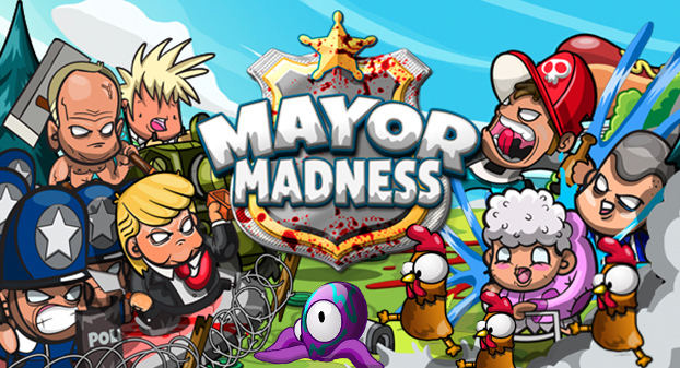 Mayor Madness is a new tower defence game where you the player must desperately defend your base from teeming hordes of rabble-rousing malcontents! To aid you in your struggle, you will have to enlist the help of one or more of the Mayors. Each Mayor has unique powers which will assist with stemming the unrelenting tide. With these heroes, these demi-gods, in tow, you will have to construct defensive fortifications the likes of which this world has seldom seen before! Chaos has extended its spindly fingers across 29 levels, spanning a multitude of environments! It is up to you to push back the pensioner and zombie laden tide to prevent the rot from spreading. Now, onwards, onwards, to tongue-in-cheek glory!