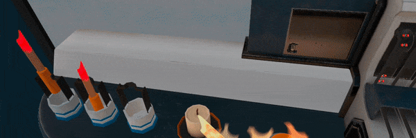 The candle experiment tasks the player with lighting a candle using a glowing wooden stick and invisible gases. Player can activate the Chemist View to see the molecules of various gases and learn about their behaviour through experimenting.