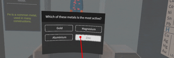 Curriculum fit: Hydrogen and Oxygen are taught in the curriculum of 8th grade Basic Chemistry in most countries. However, the VR lesson can be enjoyed by players of any age wishing to learn.