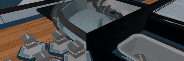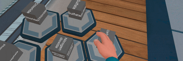 Salts VR lesson requires the player to identify salts written on each crate and "assemble" them using available ions.