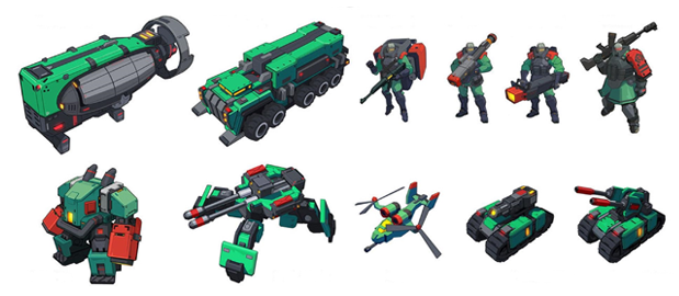 Heroic mechas that determine the outcome of battlesDozens of distinct heroes drive Core-Gear to gallop across the battlefield. With the reasonable use of heroes' "active strategic skills", one can dominate the war.
