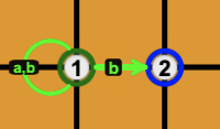 Non-deterministicThe most essential concept of FSA (and other automaton types) is called Non-deterministic. To introduce this concept, here is the second example of an automaton. It accepts all strings (only consisting of 'a' and 'b') ending with 'b':