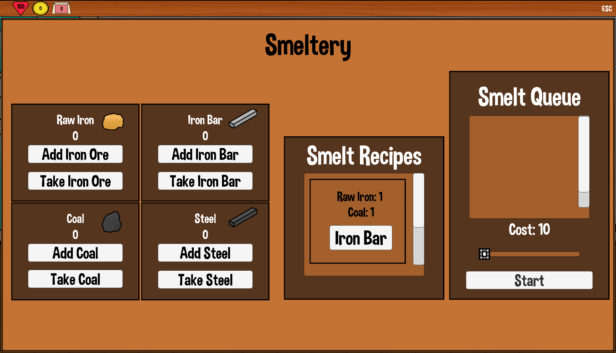 Alternatively, you can take Mike's iron and coal over to the local Smeltery. With a couple of coins and a little time, Mike can turn that useless iron ore into iron bars. Furthermore, those iron bars can be turned into steel bars. Technology has really gone beyond comprehension.